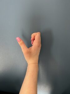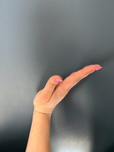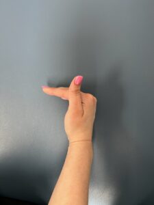 - 2. Tendon Glides: In a sequence: Start with your hand flat and fingers straight, make a “hook” by bending only the fingertips, roll the fingers to a fist, roll back to a “hook, and straighten the fingers. In another sequence: Start with you hand flat and fingers straight, make a “tabletop” position, flatten your fingers to a fist without curling the fingers, move back to a “table top” position and finish straight up and down. (See photos below)